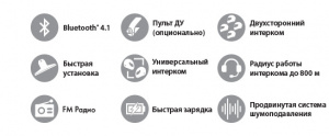 Интерком до 2-х участников на расстоянии до 800 метров на открытой местности;
