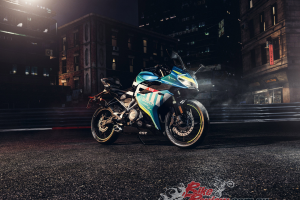 Аэродинамический обвес, легкая рама, низкий руль и агрессивная посадка подчеркивают его гоночный характер и обеспечивают водителю максимальный контроль в управлении.